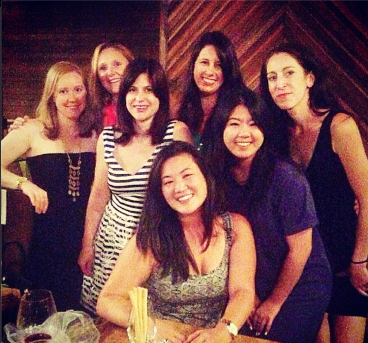 This is a terrible photo because I stole it off Kathy’s Instagram, but it’s the lovely bride-to-be and her side of the wedding party.